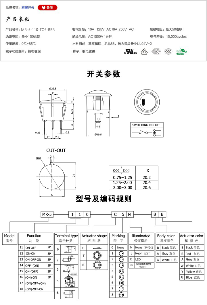 圓形船型開關,MR-5系列船型開關,船型開關圖片